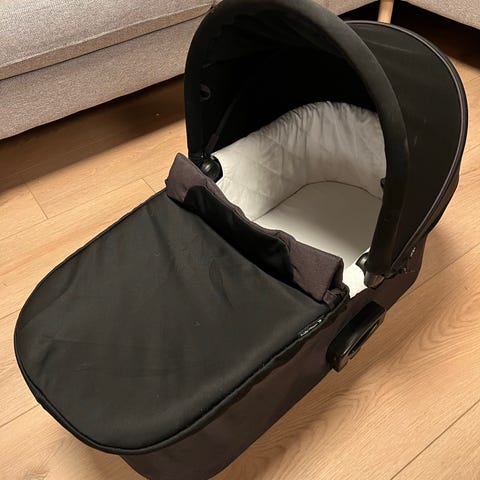 Babybag som passer til Babyjogger-vogner. Bagen har myk, vattert innside. Bagen har et overtrekk som beskytter godt mot vær og vind. Bagen er pent brukt av ett barn i 6 måneder. Kommer fra dyre- og røykfritt hjem.