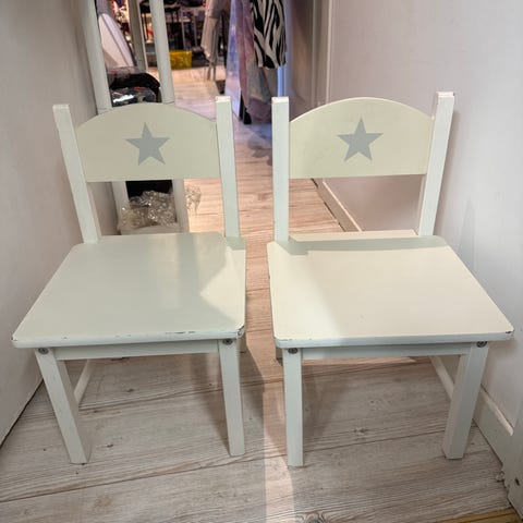 Leier ut barnestoler og tall i tre.Genialt til barnebursdag.