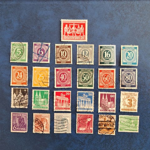 Gamle frimerker fra Tyskland / Deutschland. Meget pen stand. Se bilder🌿 32 stk. Null problem å ta dem av arket - helt uten skade. Både med og uten stempel.
