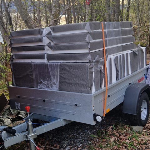Denne kan kjøres på vanlig sertifikat , er med presenning og nett. Kassemål er 250*137.. Leies ut kr 300.- pr dag ink mva
