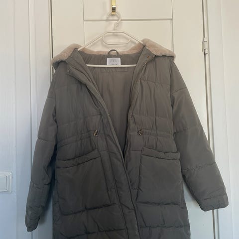 Flott pent brukt varm jakke fra Zara med tykk «pels»-krage str 164cm/13-14år. Glidelås som lukker jakke er virker dårlig og bør nok skiftes om man ønsker bruke den mye.