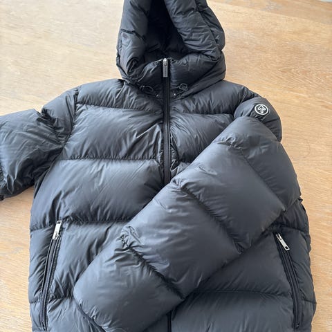 Jakken har en innerlomme som er praktisk til penger eller mobiltlf så du ikke mister. Der er også to lommer foran og en lomme med glidelås på det ene ermet. Det er også en snor som gjør at du kan stramme rundt livet hvis du ønsker å gi jakken mer fasong. 750 eller bud.