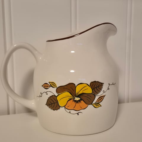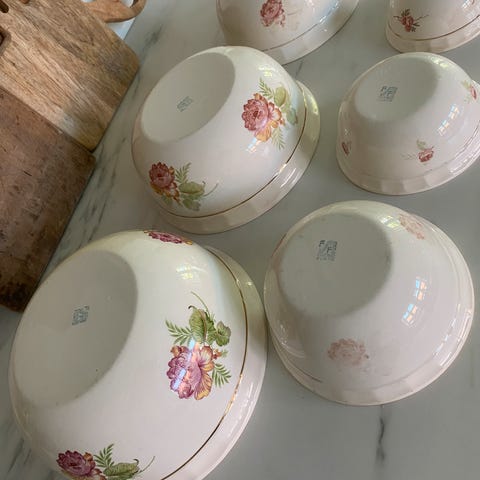 Fin blomsterdekor og gullkant. Litt slitasje øverst rundt kanten. D: 11- 23 cm