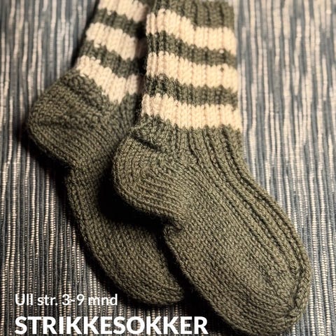 Hjemmestrikkede ullsett. Strikket i myk og kløfri merinoull, og strikket etter oppskrift fra Nøstebarn. Både bukse og genser er veldig fleksibelt, og har masse stretch. Kan brukes lenge, da både armer og ben kan brettes godt opp den første tiden. Det grønne/grå/hvite settet passer best ca str 1 år, og de to andre settene passer ca størrelse 1-2 år. Prisen er pr sett.