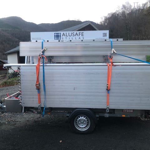Stillas med henger leies ut 1500,- eks mva pr uke,
