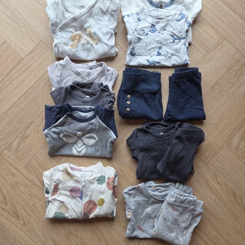 Klespakken inneholder 2 nattdrakter, 4 bodyer og 2 bukser