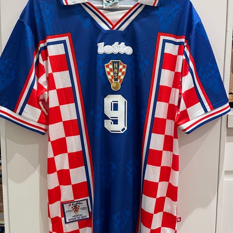 Drakta er brukt, men ser fortsatt bra ut (se bilder). På baksiden står nummer 10. Kul og litt uvanlig drakt – perfekt for samler eller fotballfan.