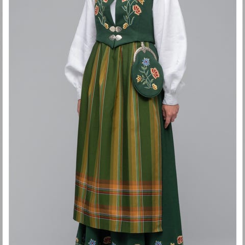 Leier ut en nydelig grønn komplett nordlandsbunad i str. 38/M