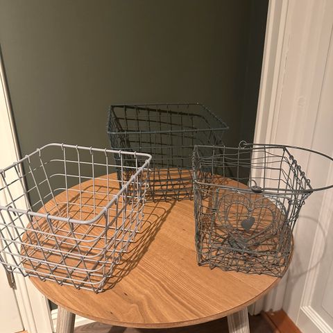 2 flotte trådkurver, lite brukt. 16 cm i diameter og 16,5 cm i diameter den andre. Selges samlet