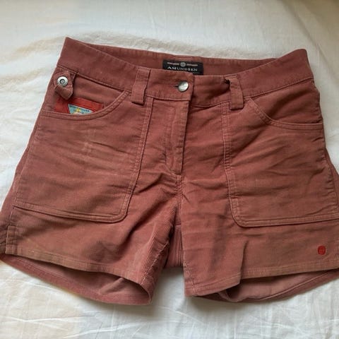 Superkule Moods of Norway-shorts selges. Disse er ute av produksjon. Fargen er en fantastisk blå med rosa kontrastsømmer. De er deilig og myke, litt løse og tynne, og holder deg komfortabel på en varm sommersdag ☀️