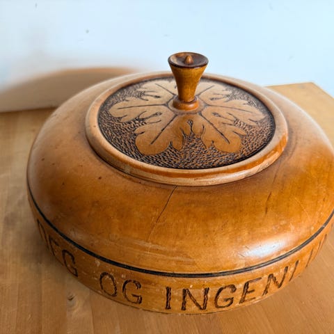 Nydelig bolle i tre, diameter 23,5 cm, høyde 7,5 cm