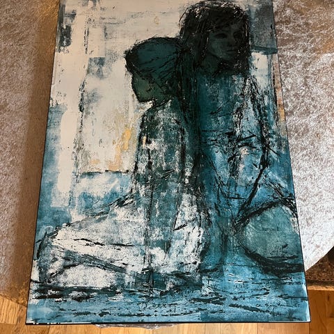 Sjelden og i veldig god stand. Et lite merke på et grønt blad, se bilde. Trykt på lerret i 1969.