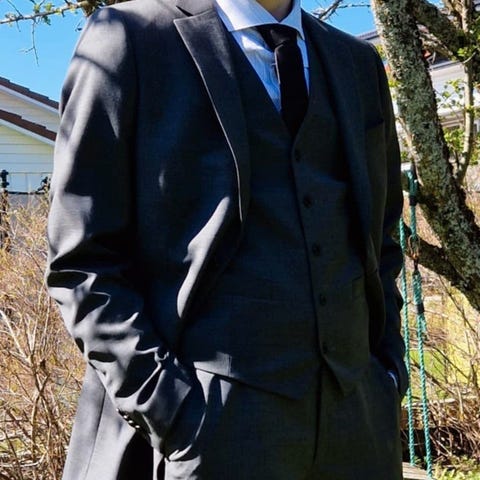 Fint brukt, grå Bertoni dress med litt lysere grå vest.