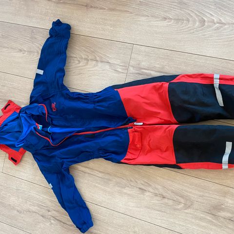 Super høstdress i vannavvisende stoff med ekstra vannbeskyttelse på ben og armer. Har en innerdress i fleece som kan tas ut. Dressen kan derfor enkelt tilpasses årstiden og været; høst, vinter eller vår.