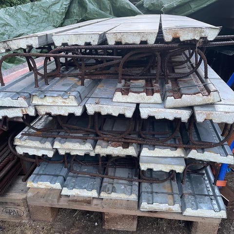 Gamle delvis rustne gangjern uten veggfeste. 4 stk. Den ene er noe buet, men kan rettes ut. Pris pr stk.