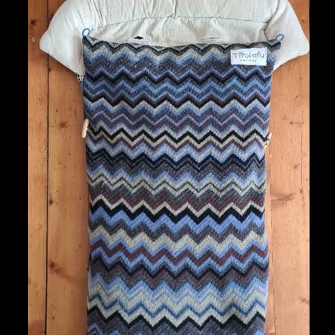 Nydelig strikket vognpose fra Tinkafu i 100% lammeull! Tinkafu sin unike lammeullspose er en vognpose som kan brukes lenge pga sin romslige fasong. Passer perfekt både i bag og i sportsvogn. Innerposen som også er i 100% ull kan tas ut ved behov.