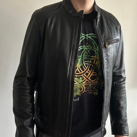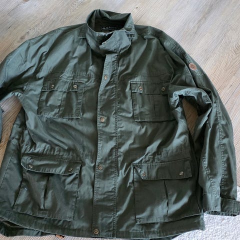 Skinnjakke i farge grå, med 4 +2 lommer. Lengde ca. 75 cm. Midjemål ca.52 cm. Jakka er ikke brukt.