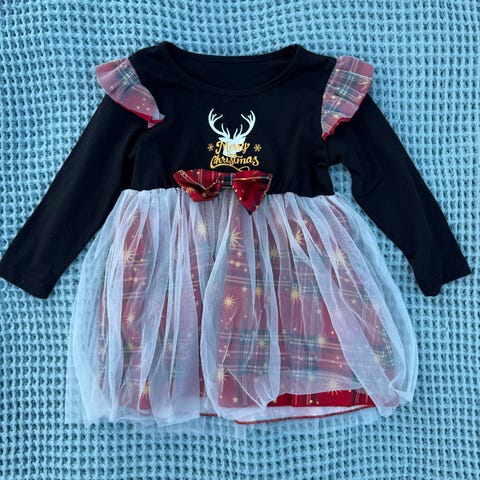 Rutet skjørt og søt flettestrikket genser i bomull fra H&M i str. 92. Skjørtet er klassisk skotskrutet, med små gulldetaljer.