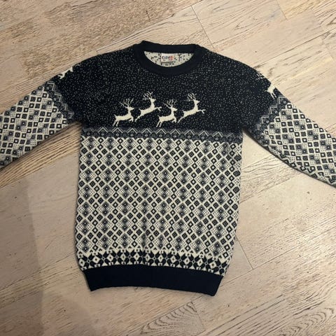 Selger den stilige julegenseren i størrelse 11-12 år (NB: liten i størrelsen). Genseren er laget i 100% økologisk bomull og er myk og deilig i fantastisk god kvalitet. Ny pris 599kr.