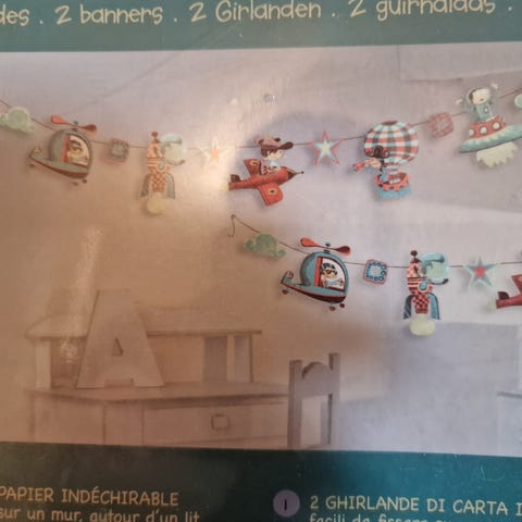 Girlander bokstaver dekor barnerom rød/rosa/hvit