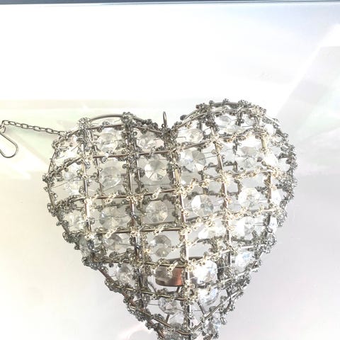 lyslykt, hjerteformet lyslykt, dekorlys, lysholder, telysholder, hengelykt, metall lykt, krystall lykt, pyntelykt, interiør, dekorasjon, julepynt, romantisk stil, vintage stil, glam interiør, sølv lykt, glitter lykt, krystalldekor, telys, lysdekor, gaveidé, pyntegjenstand