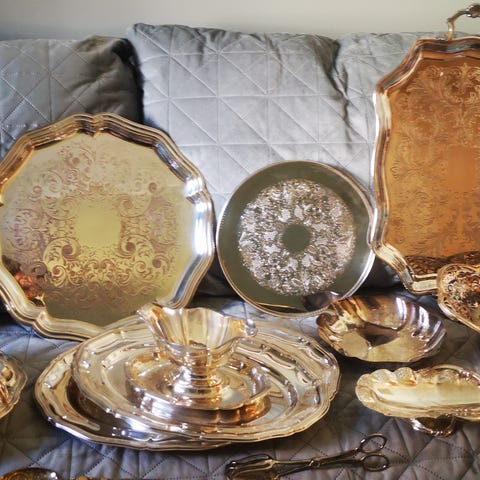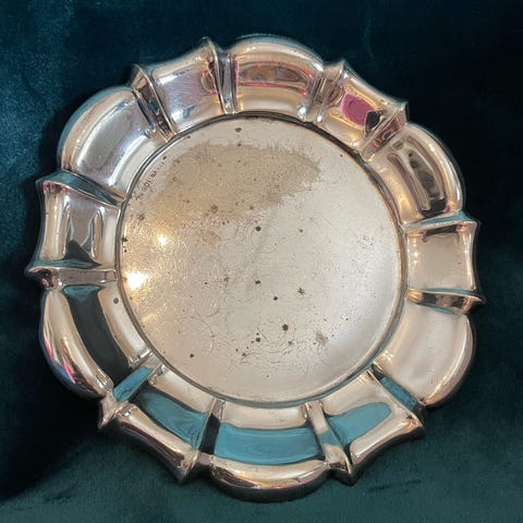 Nydelige siselerte brett, lite brukt. Det at de ser gule ut på bildene kommer fra omgivelsene som speiler seg.