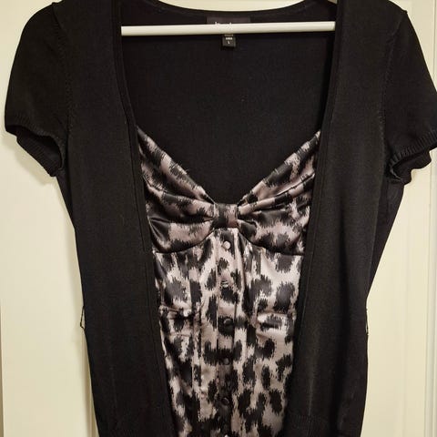 Pent brukt topp fra Guess selges str L. Den er svart mer hvitt mønster