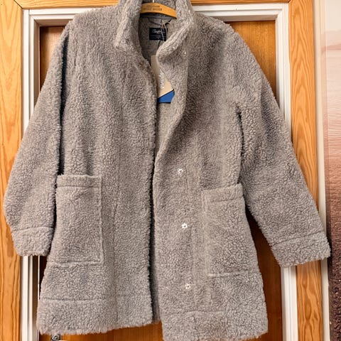 Myk jakke. Jakka er stor i størrelse. Den blei dessverre i største laget for meg. Passar heller til str M. Lappen henger fortsatt på.