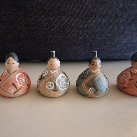 Tradisjonelle japanske dukker kalt Kokeshi. Kokeshi har sin opprinnelse i det nordlige Japan (Tohoku-området), og ble først laget som leketøy for barn. Senere ble de en vanlig souvenir å ta med seg hjem etter et besøk i varme kilder, og et populært dekorelement i hjemmet. Alle dukker er laget for hånd på en dreiebenk og så håndmalt. Alle kokeshi er derfor unike.