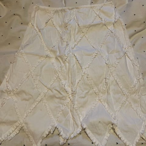 Pent brukt Skjørt fra Kaffe, kun brukt 1 gang. Skjørtet er ca. 52 cm langt og ca. 35 bred (øverst), målt liggende. Størrelse 40 / M, 100% bomull og fargen er Orange. Skjørtet har lommer på begge sider og et tynt underskjørt. Siste bilde illusterer hvordan skjørtet sitter på. Ikke samme skjørt, men fra samme merke.