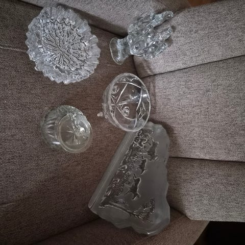 Jeg har mye mere, som jeg ikke trenger. Alt fra skåler, fat, askebeger, karaffel med kork osv....
