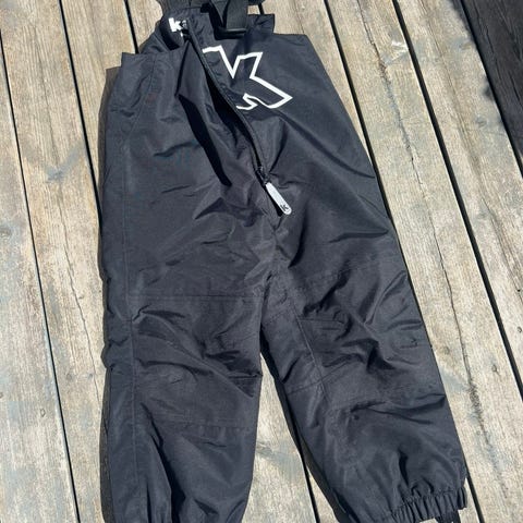 Regnbukse med knapper på sidene og strikker under beina som er lite brukt