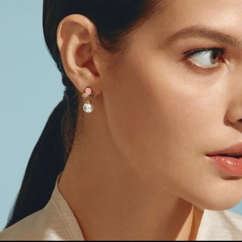 Ubrukt smykkesett med rosegullbelegg og spinellstein. Øredobber og smykke.