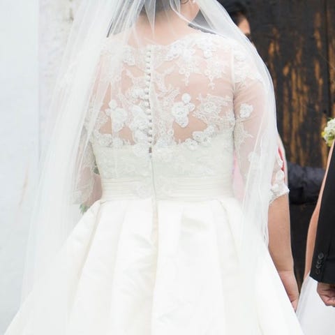 Brud på bilde er 178 cm høy, og størrelse M i vanlige klær.