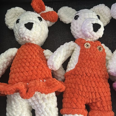 Heklet med bomullsgarn, og kan vaskes på høy temperatur.