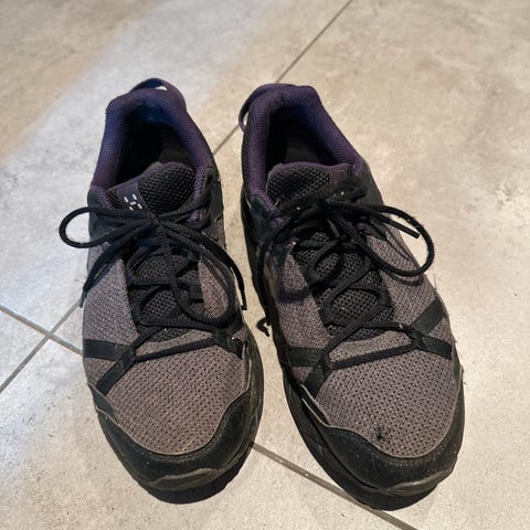 Svært pent brukte tursko fra Haglöfs til dame i størrelse 37 1/3. Disse er vannavstøtende, og demper godt. Passer godt til turer i relativt tørt vær, da de ikke går over ankelen.