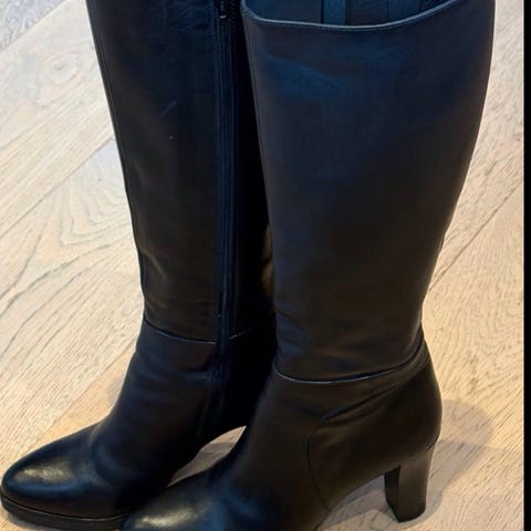 Disse er brukt en gang. Lekre støvletter i skinn fra Marc o’polo. Mine er str 40. God plass til en litt fyldig legg. De koster 2500,- og selges enda. Du Kan få kjøpe mine for 1200,- Porto kommer i tillegg ved sending.