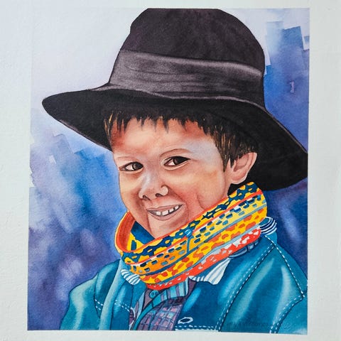 Liten akvarell/tusjtegning kjøpt på marked i India.