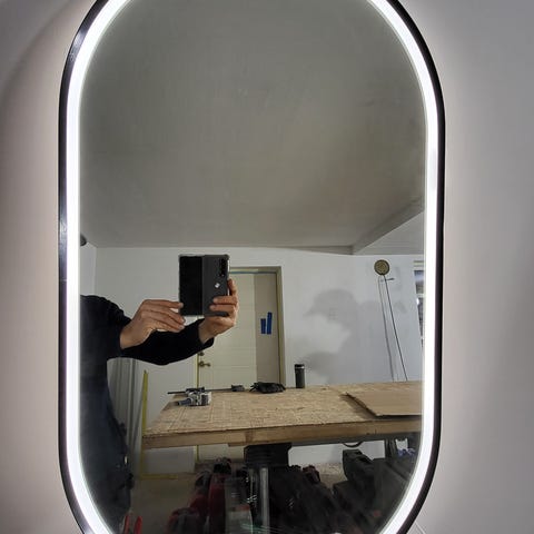 Høyt firkantet speil med LED lys, dimmer, fargejustering 80-90 cm