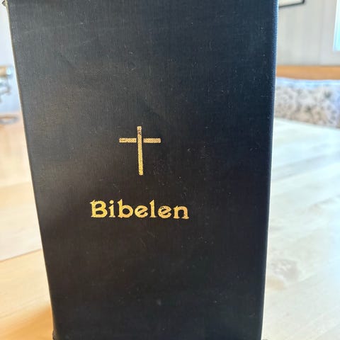 Bibelen 1900 i god, komplett stand inkl makkabeernes 1 og 2'dre bok på slutten av GT. Arr det Norske bibelselskabs forlag. Bundet av G. Berg's dampbogbinderi!