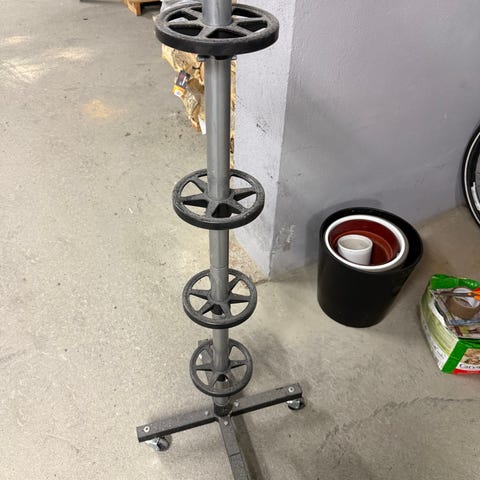 Til salgs er veggfester for sykkel. Disse skrus på veggen og sykkelen henges opp med forhjulet i bøyla. På den måten tar syklene mye mindre plass i garasjen/bakgården. Jeg har fire av disse og selger dem for kr 100 per stykk.