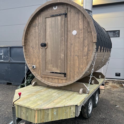 Sterk pris 3 meter Tønne Badstue med vedovn.