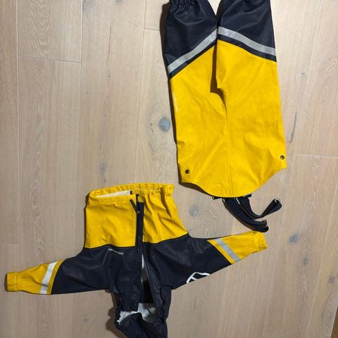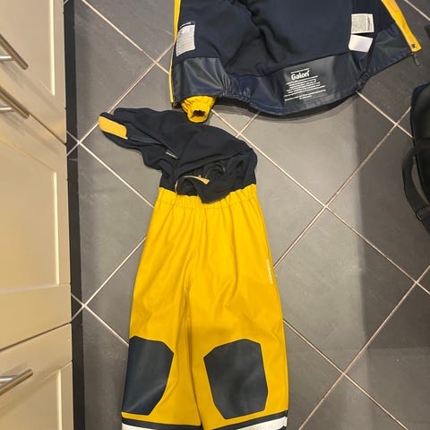 Regntøysett til barn – str. 92 (orange/grå) – pent brukt