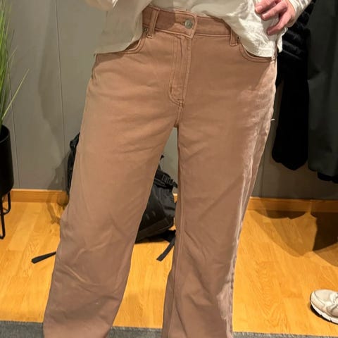 Beige bukser fra Mango, str. 38. Ankellange og med vide ben (jeg er 160)