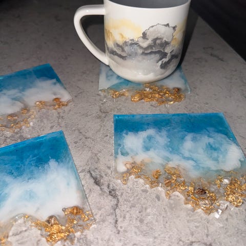 Selger 6 Glassbrikker 8 kantet lys blå med blomstermotiv PVC (ny/ubrukt), se bilder.