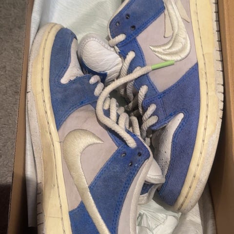 Nike skateboarding skate dunk low jordan 1 3 4 blå navy blue jeans hvit hvite white gum sole gumsole sneaker sneakers sko court dunks vintage custom bleached faded EU 43 US 9.5 9,5 9 1/2