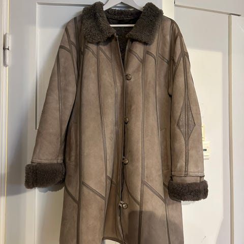 Saueskinnsjakke fra Dear Dharma selges for kr 3000,-Ny pris kr 9900,- Pent brukt.