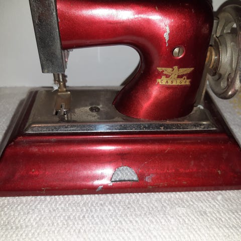 Symaskinen har en liten skade i skroget , men funger fint for det om.