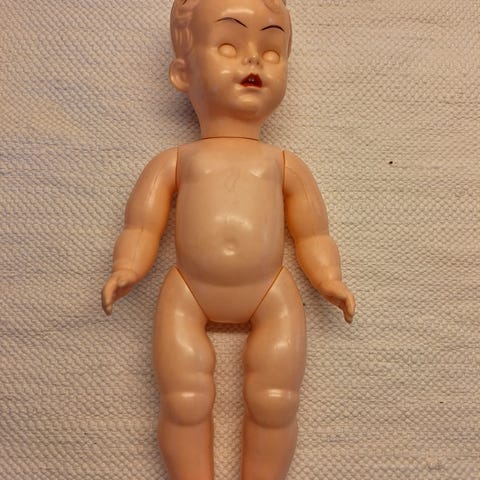 Celluloid- dokke fra 1930/40, vurderes solgt til fast pris. 17 cm høy. Skilpadde. Noe løse armer og ben, ellers fin. Sender hjerne, godt innpakket, mot porto.