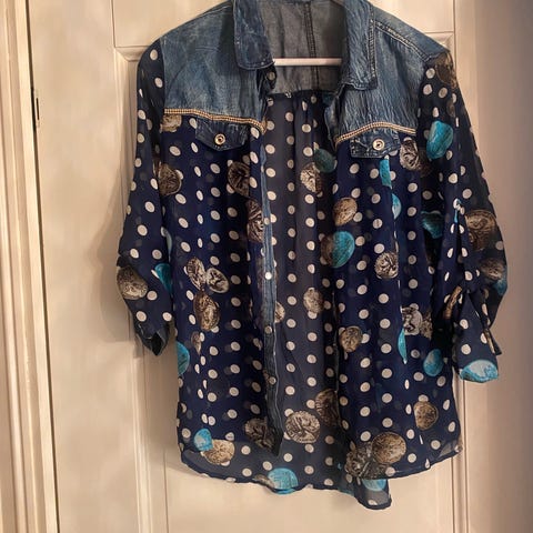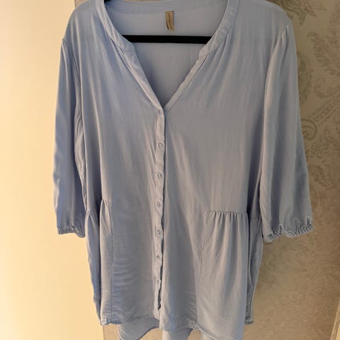 Lett og luftig bluse m/‘flaggermusermer’! Brukt et par ganger. Str ca. 42/44. Hentes/sendes med posten kr 73,-. Betaling Vipps/kontant. Se bilder!! 🌟🌟🌟